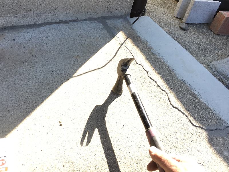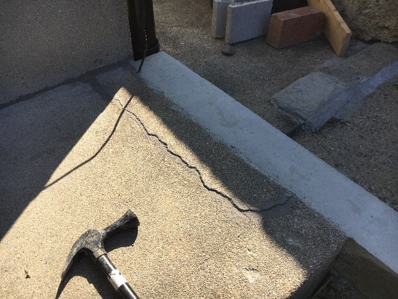 で、以前から気になっていたこの犬走りの亀裂と不動沈下。