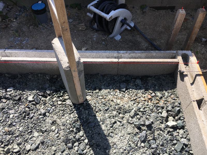 次に並べた枠のブロックをこうして土間コンを打つ側のみ