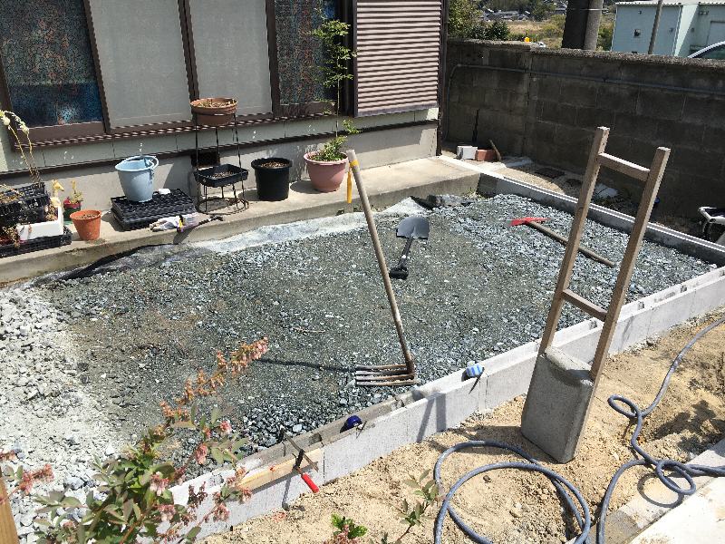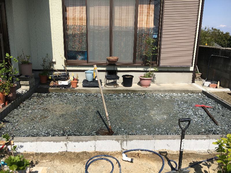 庭のDIYでこの地業が最も大変な作業ですがこれをやらないと