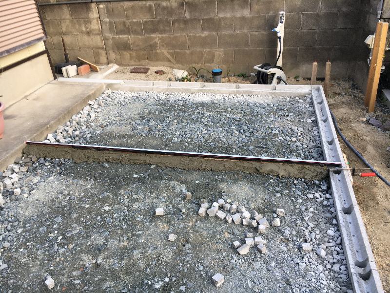 何故かと言いますとこの犬走りにはウッドデッキの柱を立てますので