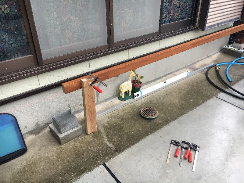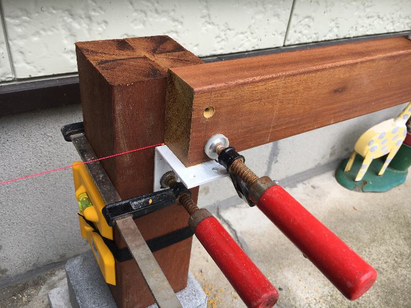 先ず、柱側の基準高さに合わせてクランプで固定。