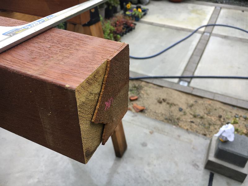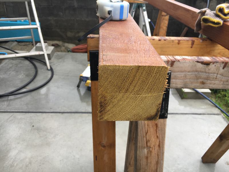 入荷したままの材の端面は直角ではないのでこうして