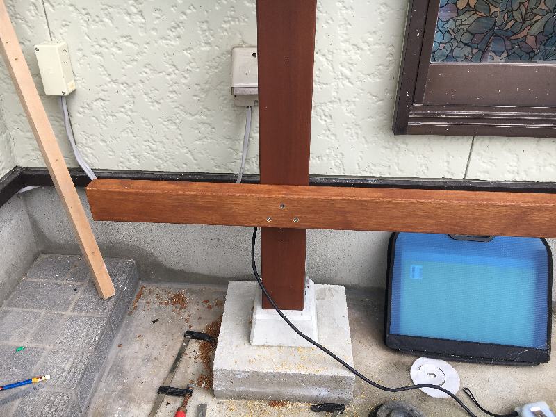 沓石に設置する束は羽子板にコーススレッド+M10SUSボルトの
