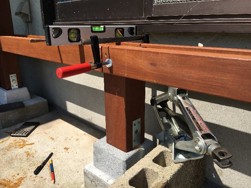 デッキの直角に関しては既設してあります沓石の羽子板でピッチと