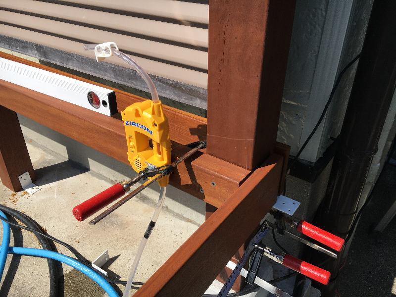 繋ぐこの幕板を決めました。水平は水盛り菅で確認。