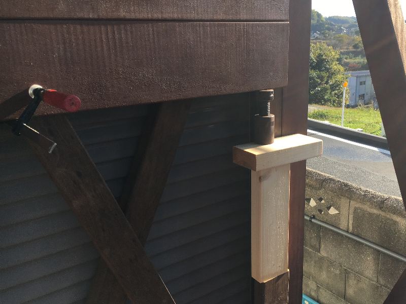 ケーブルをこうして挟み込んで4枚目の板を固定