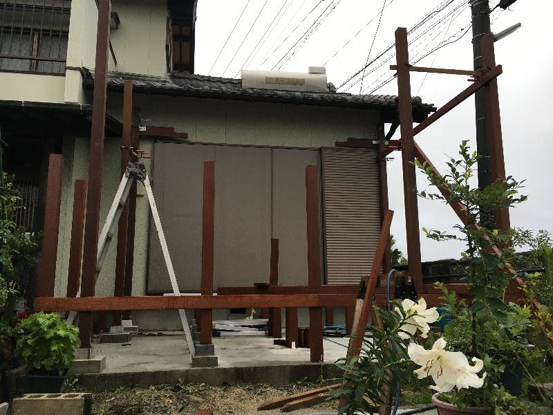 家屋のような耐力壁を持たないウッドデッキは骨しか無いので
