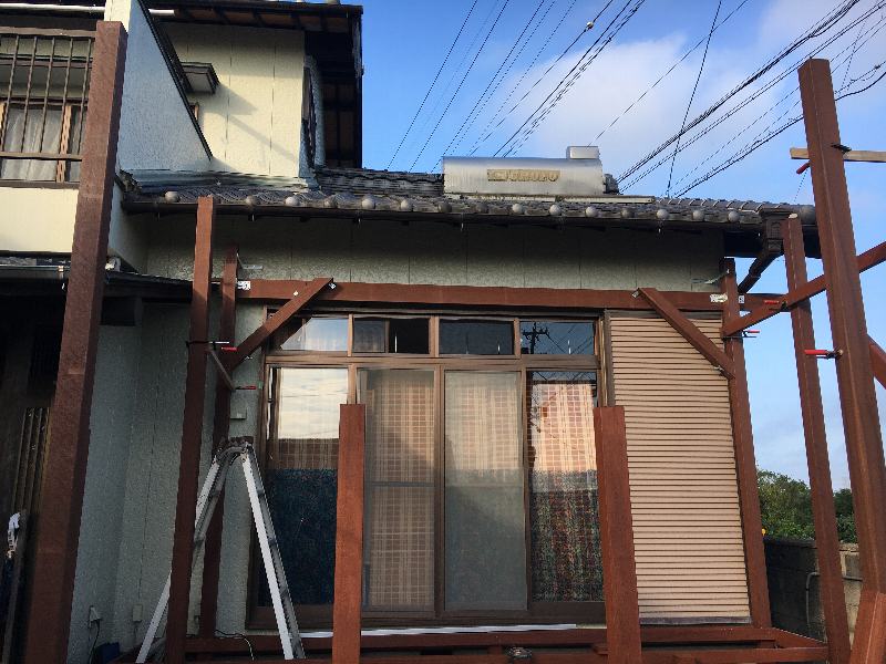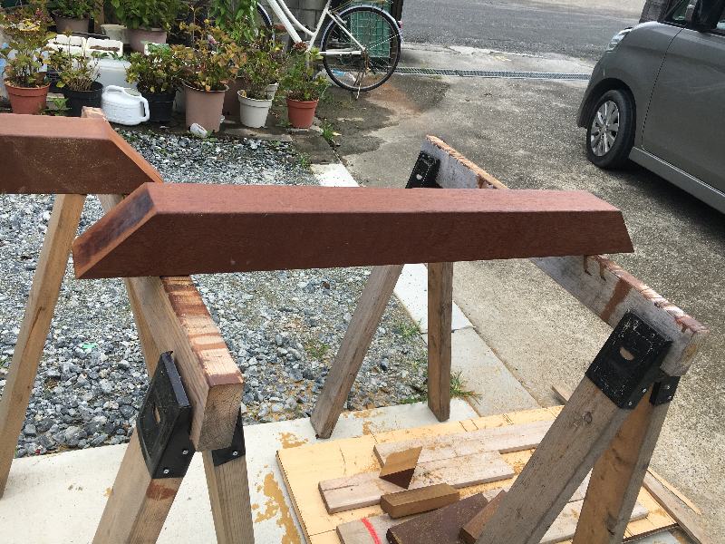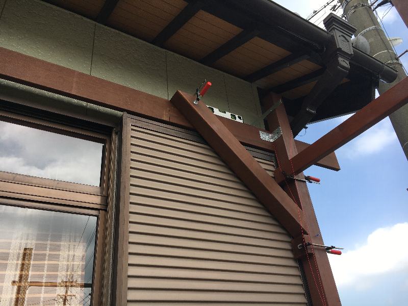 母屋側の梁の手前側に貼る板は屋根勾配が決定してからとなります。
