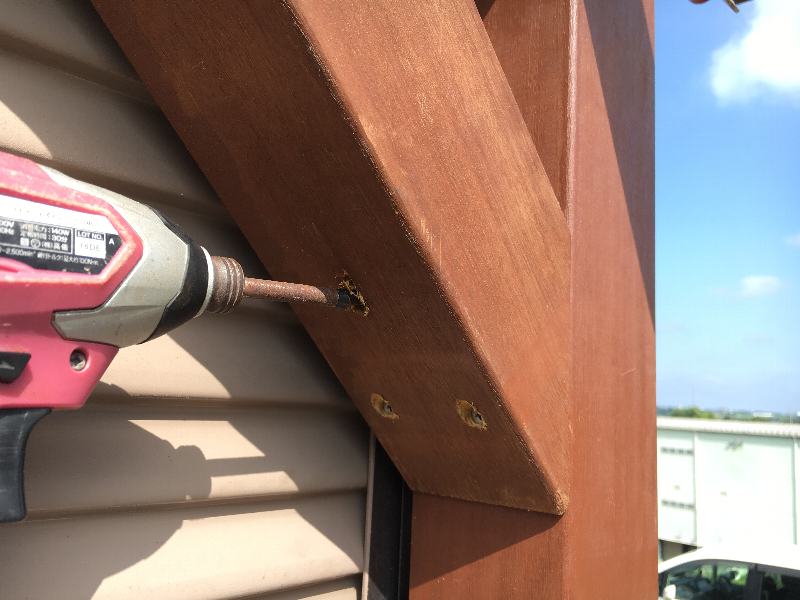 仮止めに使用したのは90ミリのステンコーススレッド2本。