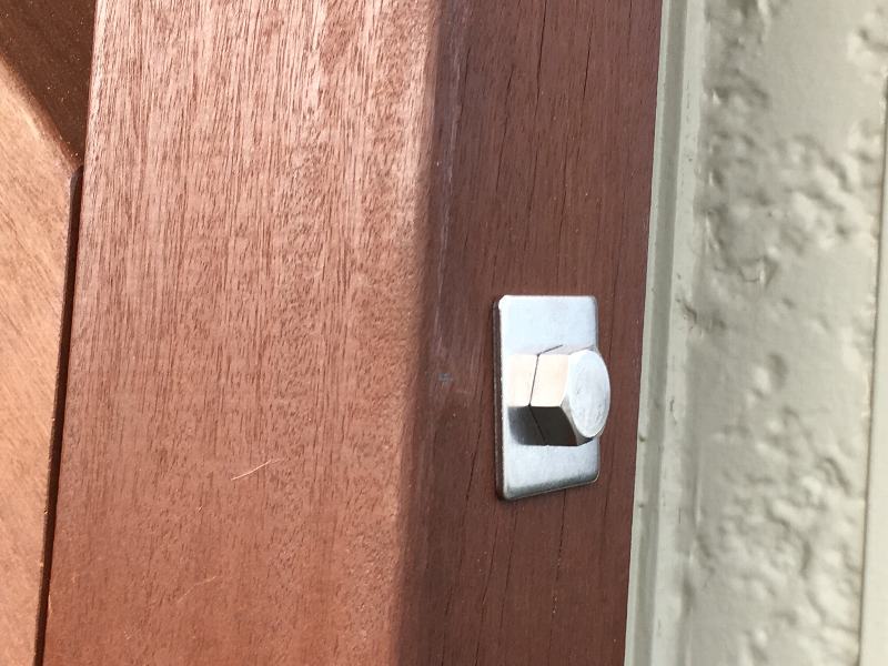 柱側からボルトを入れますので6角頭の方は建築用平座金1枚だけ。