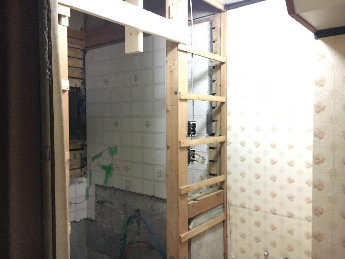 補強やユニットバス組み込みの為の木組みも進んでいます。