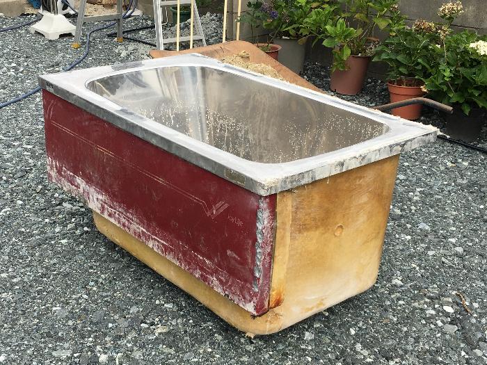 このバスタブはこの後畑で水溜めようとしてまだまだ働きます。