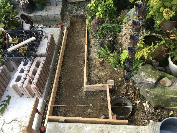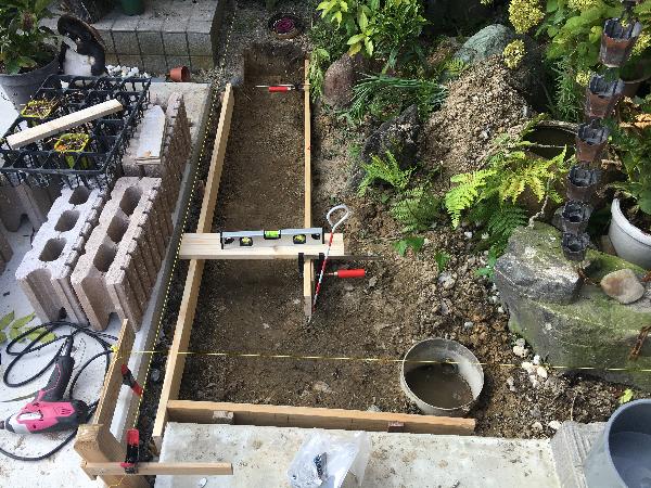 後は順次レベルを確認しながら枠板を固定して一応完了。