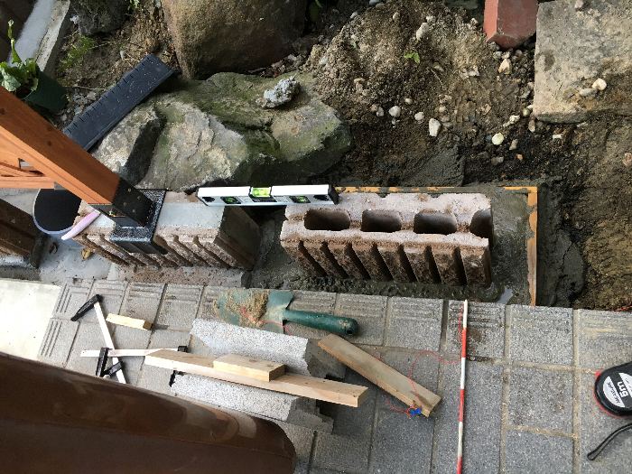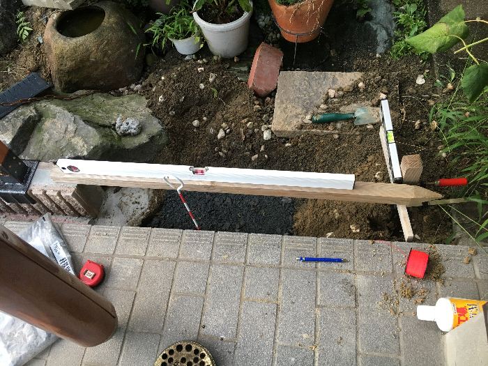 ここにフェンス支柱をもう一本立てなければならないので基礎
