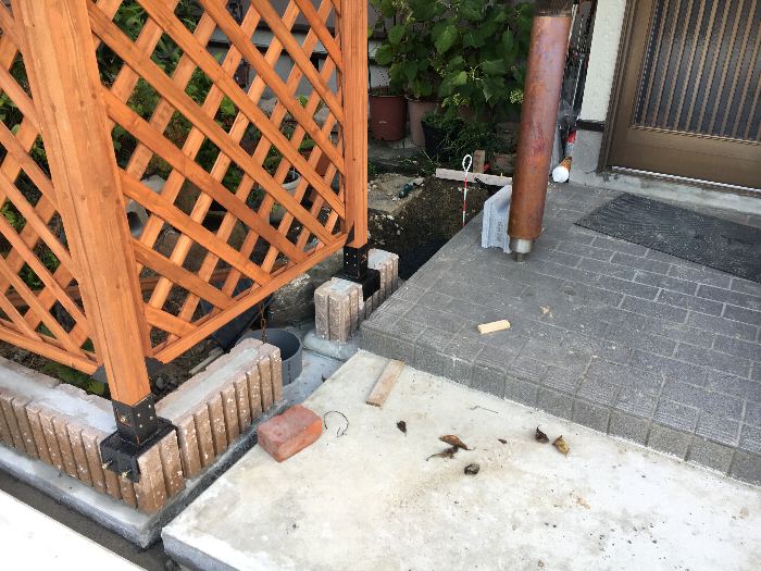 施工する箇所は設置済みのフェンスと玄関柱との間。