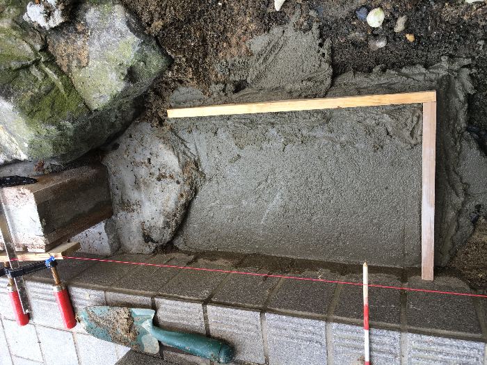 ブロックをコンクリートで固定するエリアを割付て枠の設置