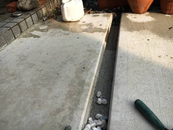 で、この隙間の溝に水流れが必要なのでドライモルタルで