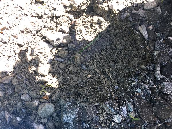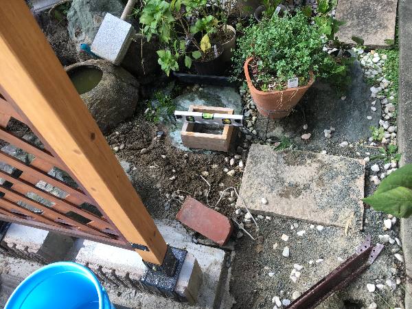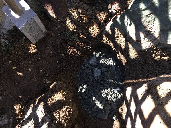 支柱を支える基礎の下に敷き込む砕石はお庭から調達します。