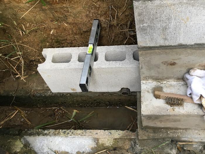 既存の側溝の水勾配に習って左上がりの1/100勾配で設置
