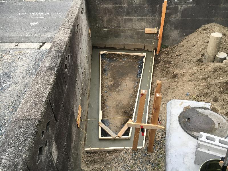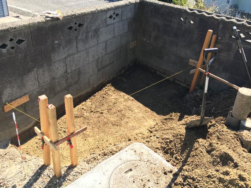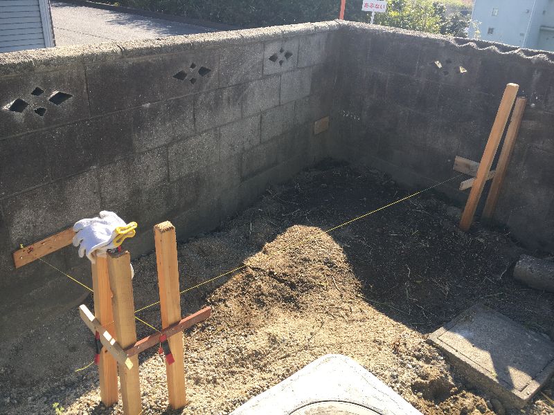 地盤を掘る深さの目安としては水糸からの下がり寸法です。