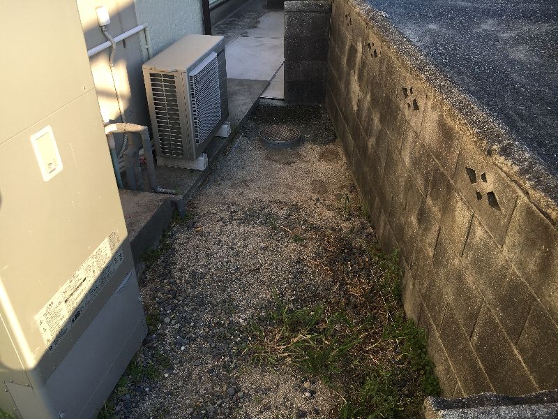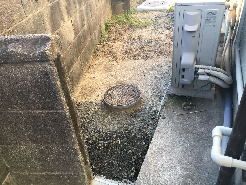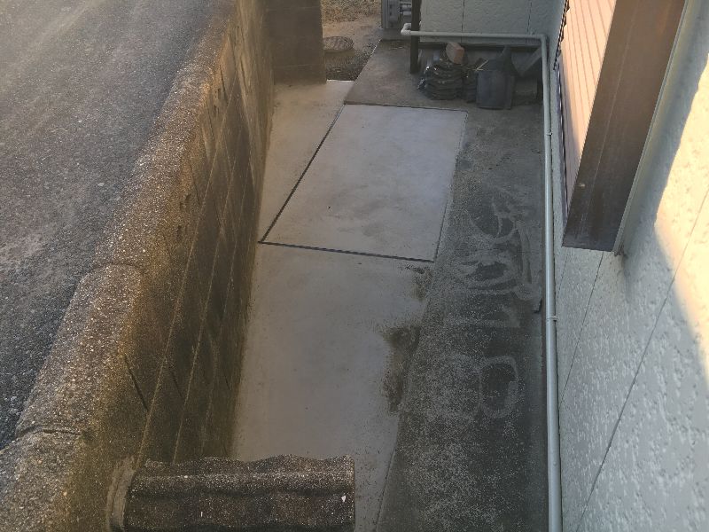 業者による正面側の庭のコンクリート工事を含めた改修工事が