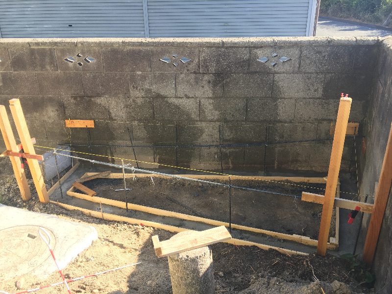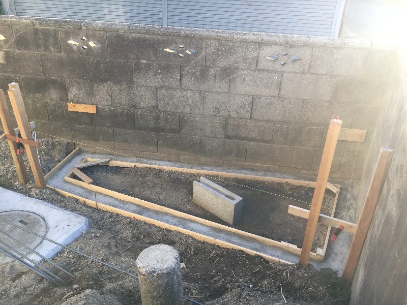 捨てモルタルの施工までやりましたが、今回は2段積みのブロックに