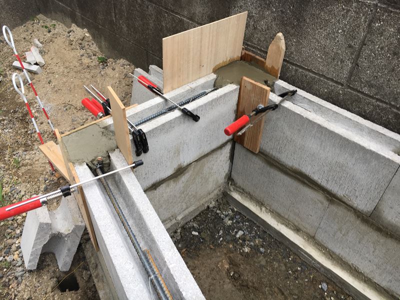 この角の鉄筋が通る部分の壁はサンダーで切れ目を入れて
