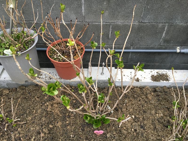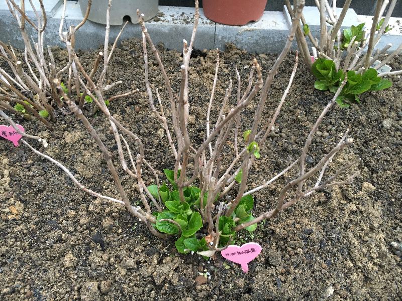 ママもこの限られた狭い花壇に入れる赤紫陽花の選定には