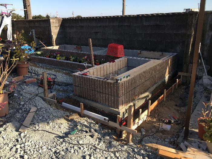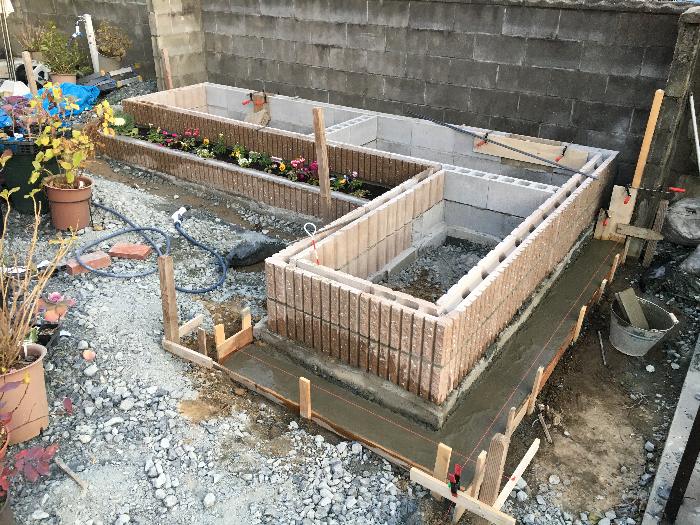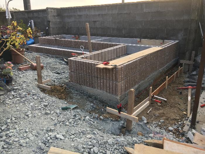 ブロック積みの為の遣り方を解体してコンクリート施工用の