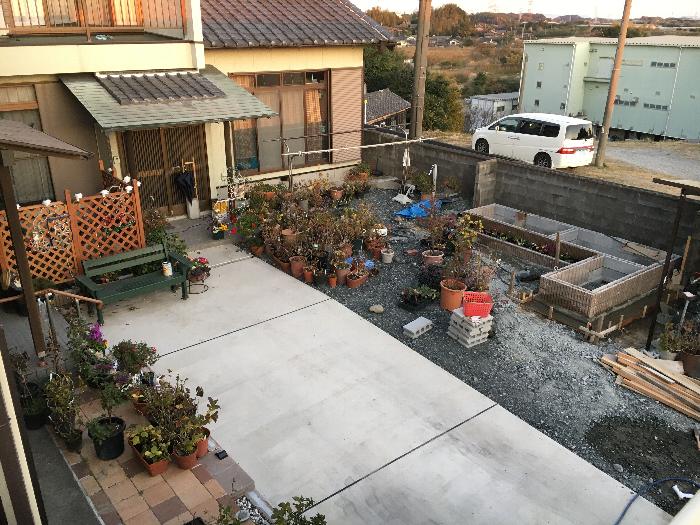 コンクリート厚としては花壇右奥の一番低いところで140ミリ。