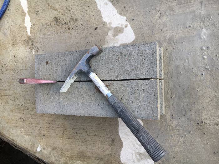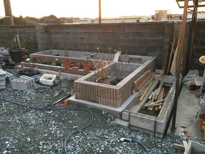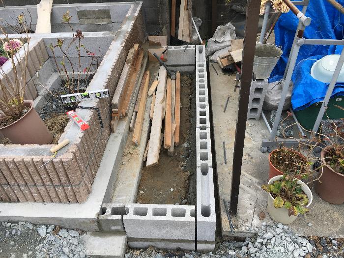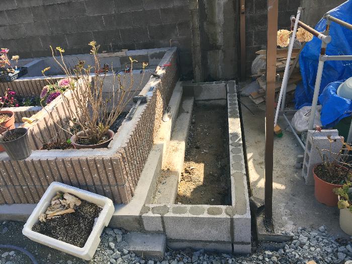 ブロックをカットした物、奥側は板で仕切りコンクリートを