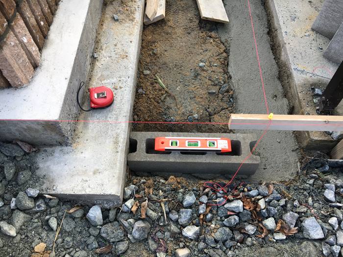 既存のブロック塀側にウッドフェンスを立てる工事がまだ