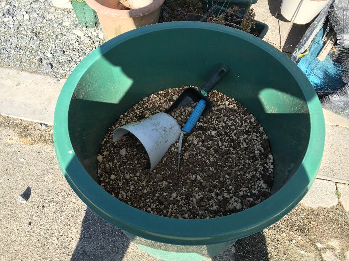 入れたのは以前ママとミキサーで作った青紫陽花用の調整土。