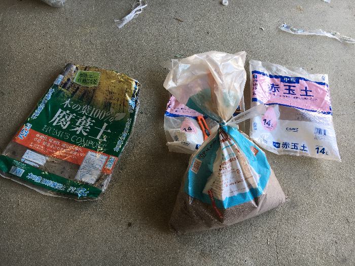 ここは酸性土ではいけないので腐葉土と赤球、バーミキュライト