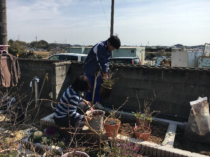 助っ人に来てくれた次男はこちらの花壇でもママの手助けを