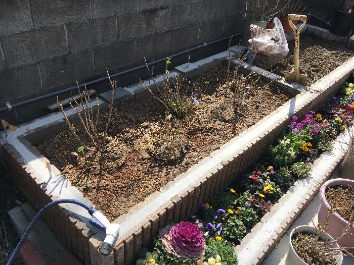 そして最後に、ママが先日薔薇を植えたビッグ花壇横のミニ花壇に