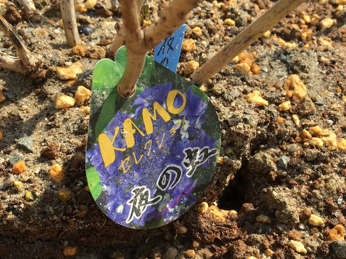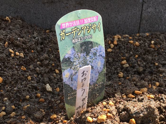 先日左側の青紫陽花用の酸性土を入れ終え、本日は次男も