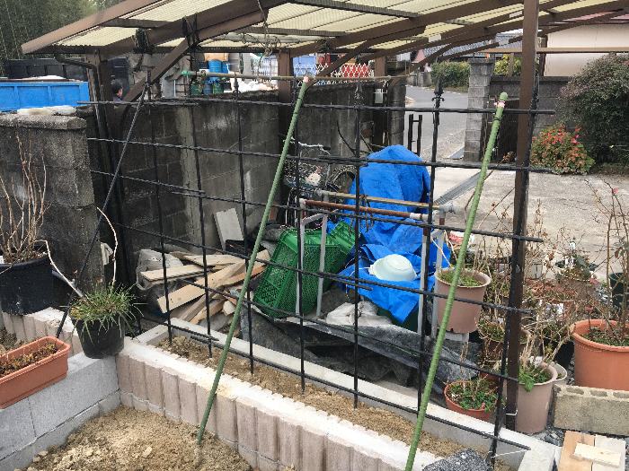 先週この薔薇の柵を組みましたが補強を入れていない方向への
