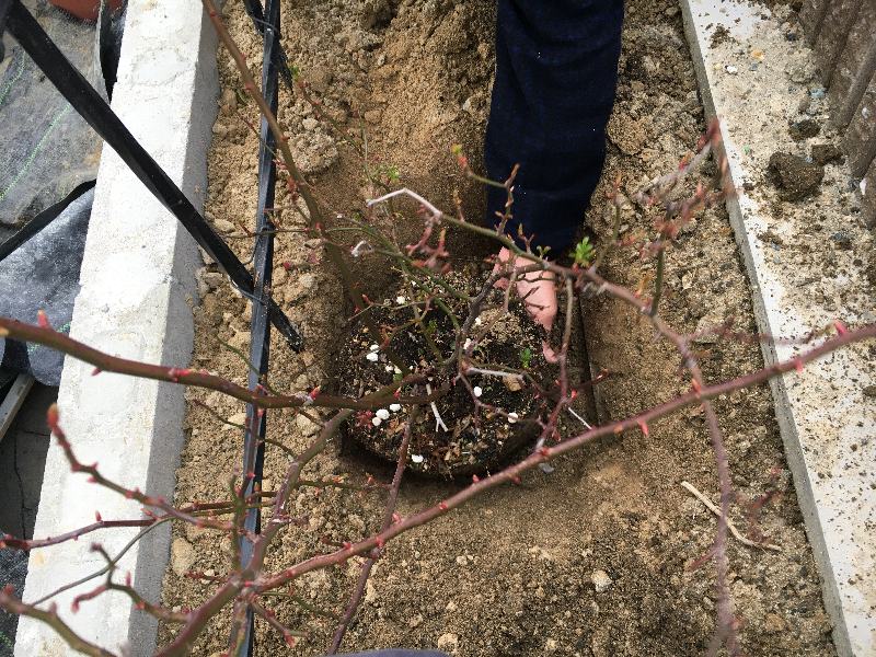 で、本日目出度く薔薇が植えられました。