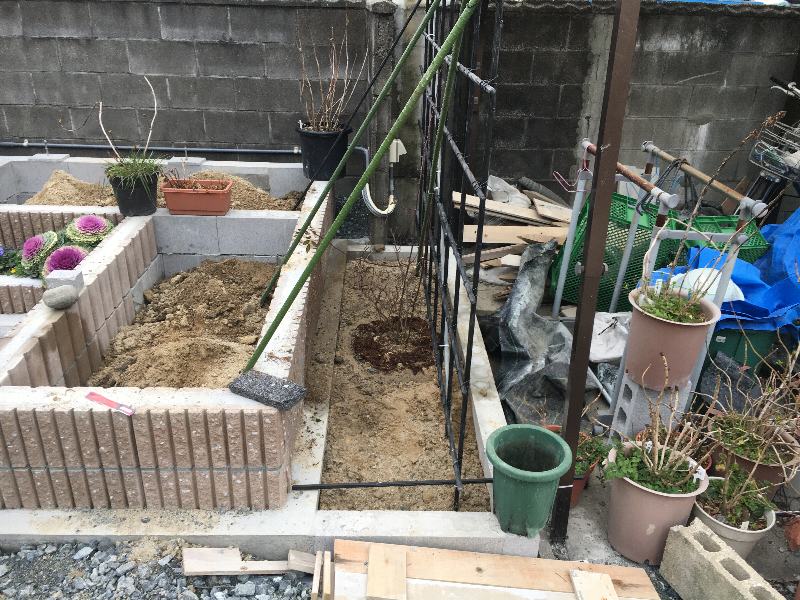 ほど円形に掘って、薔薇用の土を入れて元肥を入れてから