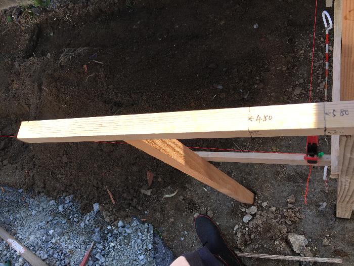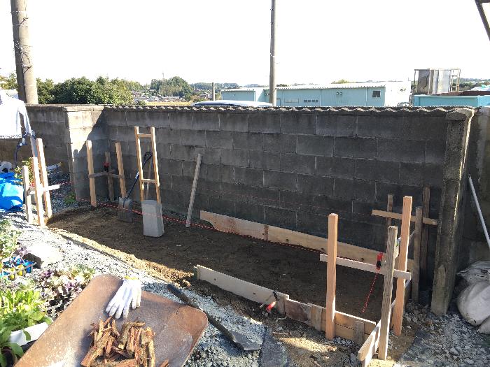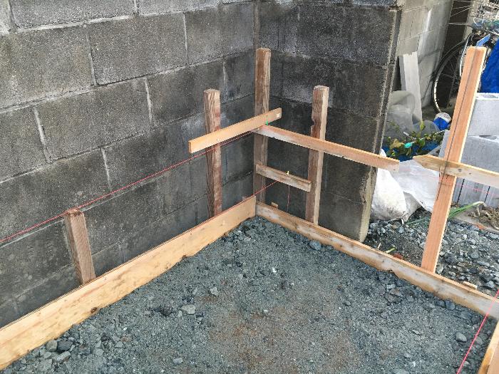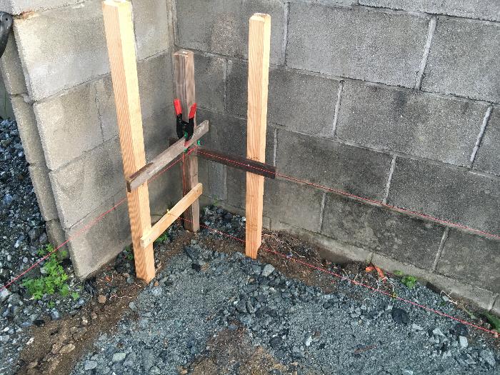前回、遣り方を張り終えたので今回はブロックを並べるライン