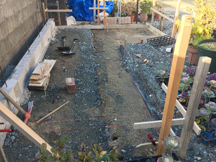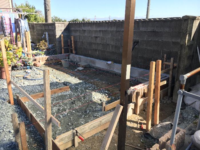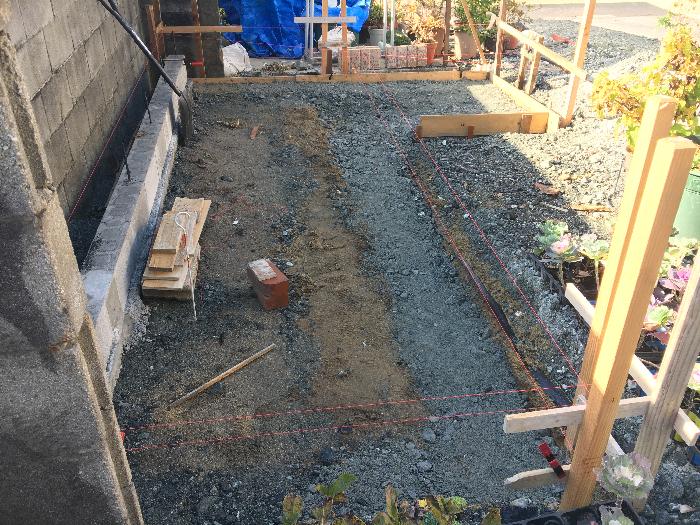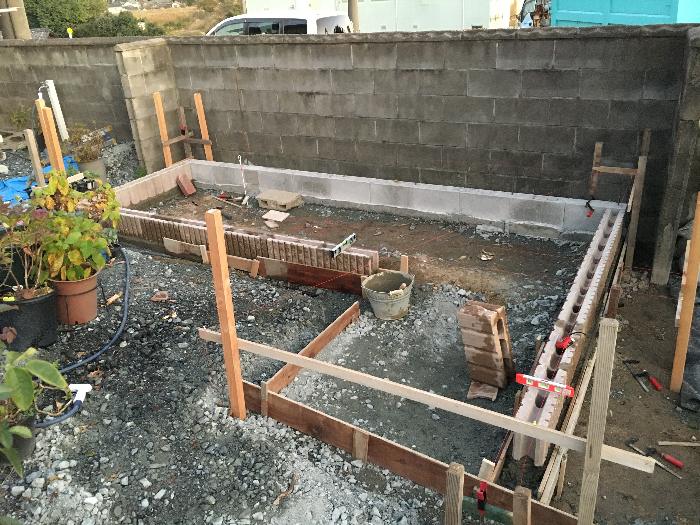 今回の基礎コンクリートがブロックごとに敷いて行う方法なので