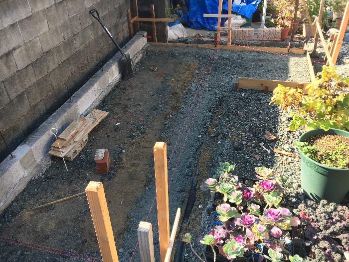 そして砕石の敷き詰めと足でバンバン踏んづけ。