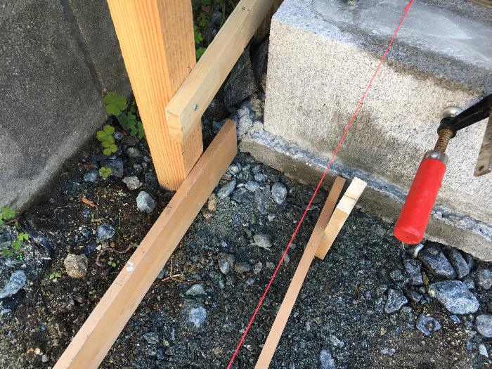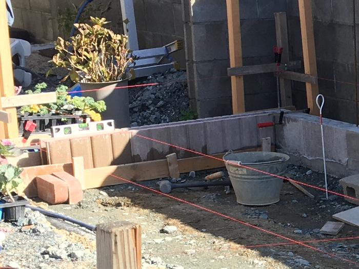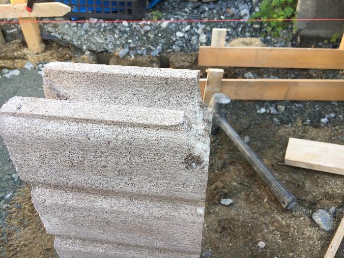 本日の手始めはこの花壇左端のコーナーブロックへの