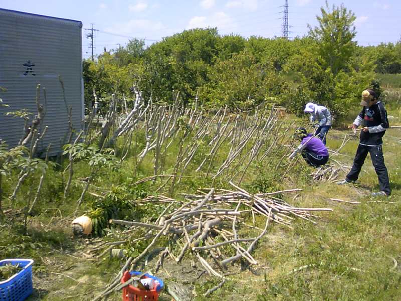 今日は長男も参加してイヤイヤ切った枝を片付けて