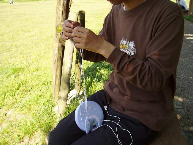 長男にはお水を持たせ そして必需品のCDプレーヤー