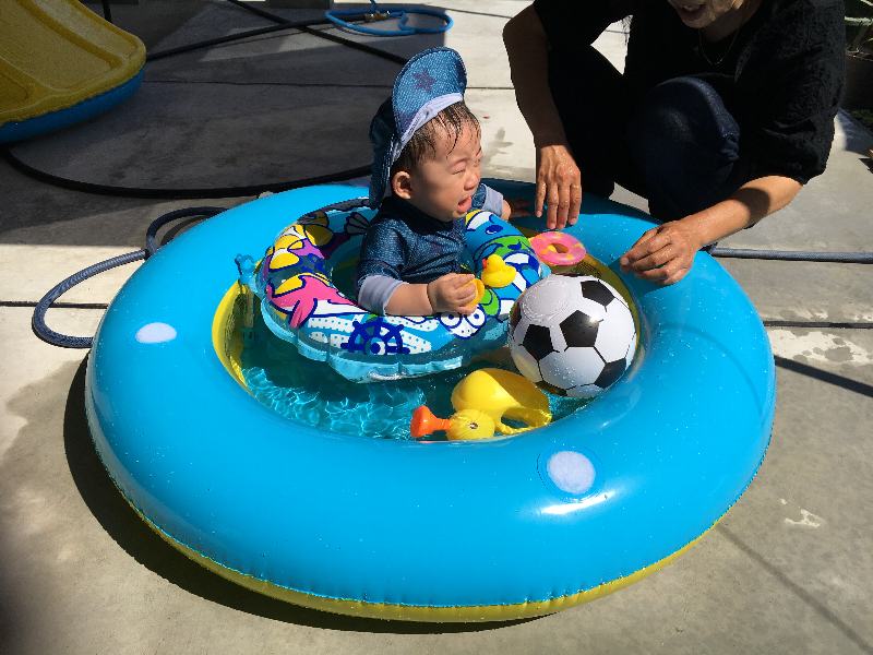 今度は泣かずにプールしましょうね。