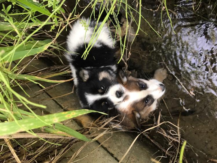 しまいそうな二匹の野良犬の子を発見しました。