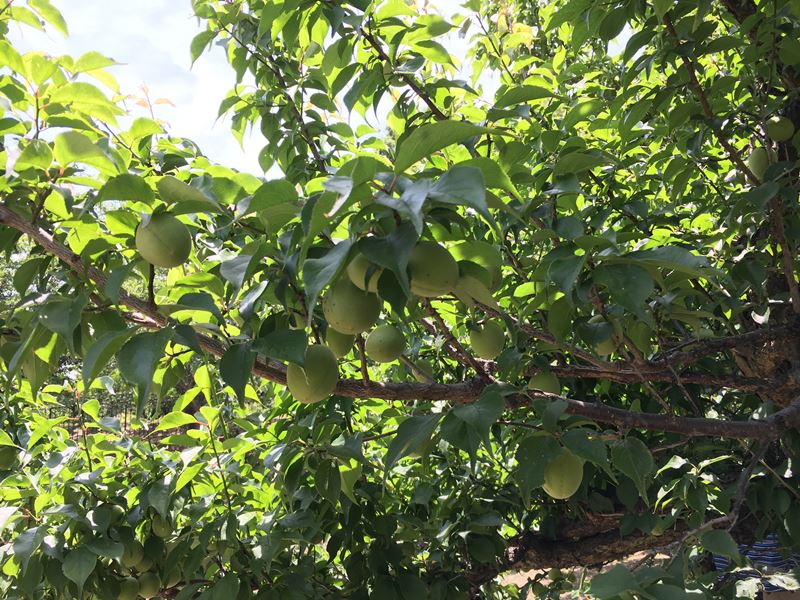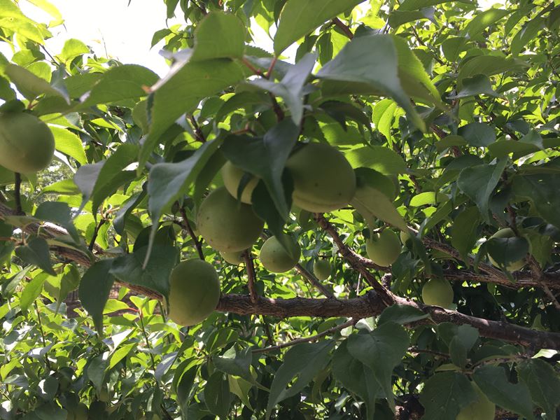梅の木はこのような斜面に植えられていてしかもあまり高くはない