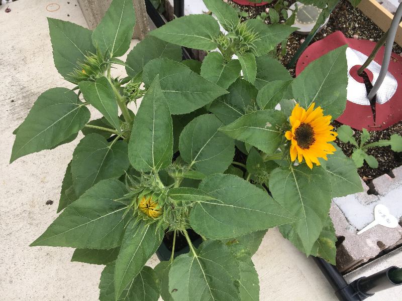 我が家へ戻り、庭で長女のひまわりが開花して待っていました。